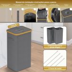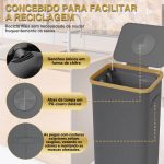 Este modelo apresenta costuras reforçadas, materiais duráveis e uma cor cinza esteticamente refinada, que se mistura facilmente em qualquer ambiente – seja em um escritório moderno ou uma cozinha minimalista. Seu design compacto, mas espaçoso, permite reciclagem eficiente, sem ocupar muito espaço.
