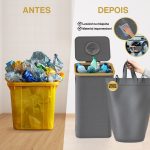 Armazena uma grande quantidade de resíduos e reduz a necessidade de esvaziamento frequente, permitindo melhor organização e menos transbordamento de lixo.